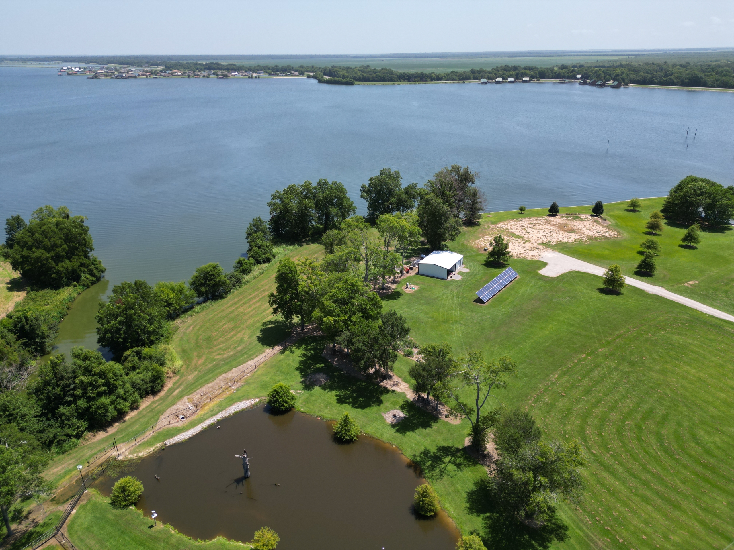 This is a pristine waterfront property with all the bells and whistles. It fronts Poverty Point Lake and has 700 +-feet of frontage. Where you would build a home, a white rocked road leads to a house pad, water, underground electricity, natural gas, 440 +- aluminum seawall, and Forty-four 10.4 KW solar panels with a beautiful lake view. There is a 40×30 shop, and half of it is heated and cooled. The seller is letting his 5075 E John Deere cabin air tractor with a bucket and a ten-foot bush hog that has only 450 +- hours convey with the sale. A stocked pond with bream and bass is on this gorgeous land; I caught a three-pound bass while taking pictures. There is a horse stall with water and electricity by the piped fence pasture. Fronting Highway 17, this land is only 2 miles north of Delhi and across the lake from the State Park. Poverty Point Lake is 2,700 acres known for its trophy white perch (crappie) and large-mouth bass. This land is not in a flood zone and is subject to some restrictions. By appointment only.