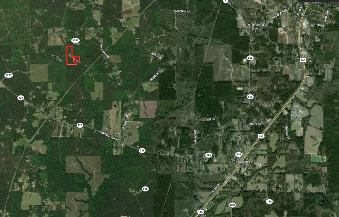Land with road frontage, timber, and utilities nearby. This property joins McDowell Road and Highway 3239. This property is on both sides of each paved road. There is an old homesite at the center of the land and multiple places to put your future one. The topography has a slight roll. There is enough woods for a deer stand. It is not in a flood zone, and there are no restrictions. A power line cuts through the property. The timber stand is comprised of Red Oaks, Loblolly Pines, White Oaks, and Sweet gums. The property’s address is 116 McDowell Rd. Grayson, LA.