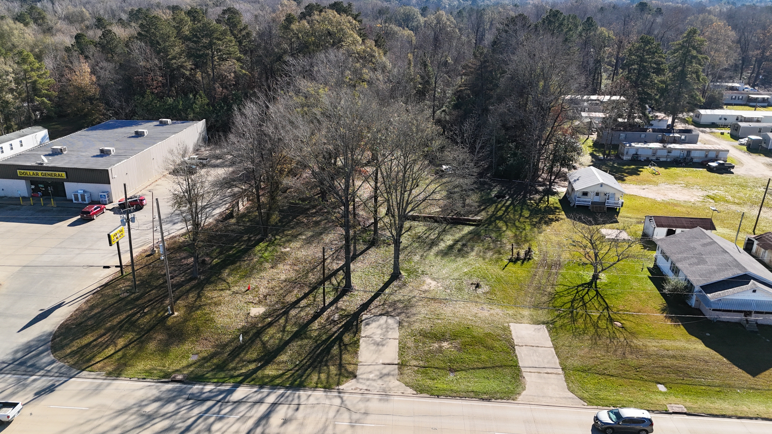 Prime property on Highway 165 in Grayson, Louisiana, adjacent to Dollar General. This development property already has water and electricity on it and two driveways. This land is located within the city limits of Grayson and on City Sewer. You could easily put something commercial here. The front of the property is cleared, and the back is wooded. Grayson Elementary and the Grayson red light are a half mile away. Columbia is five miles away. This would be an excellent investment or a place to put your home!