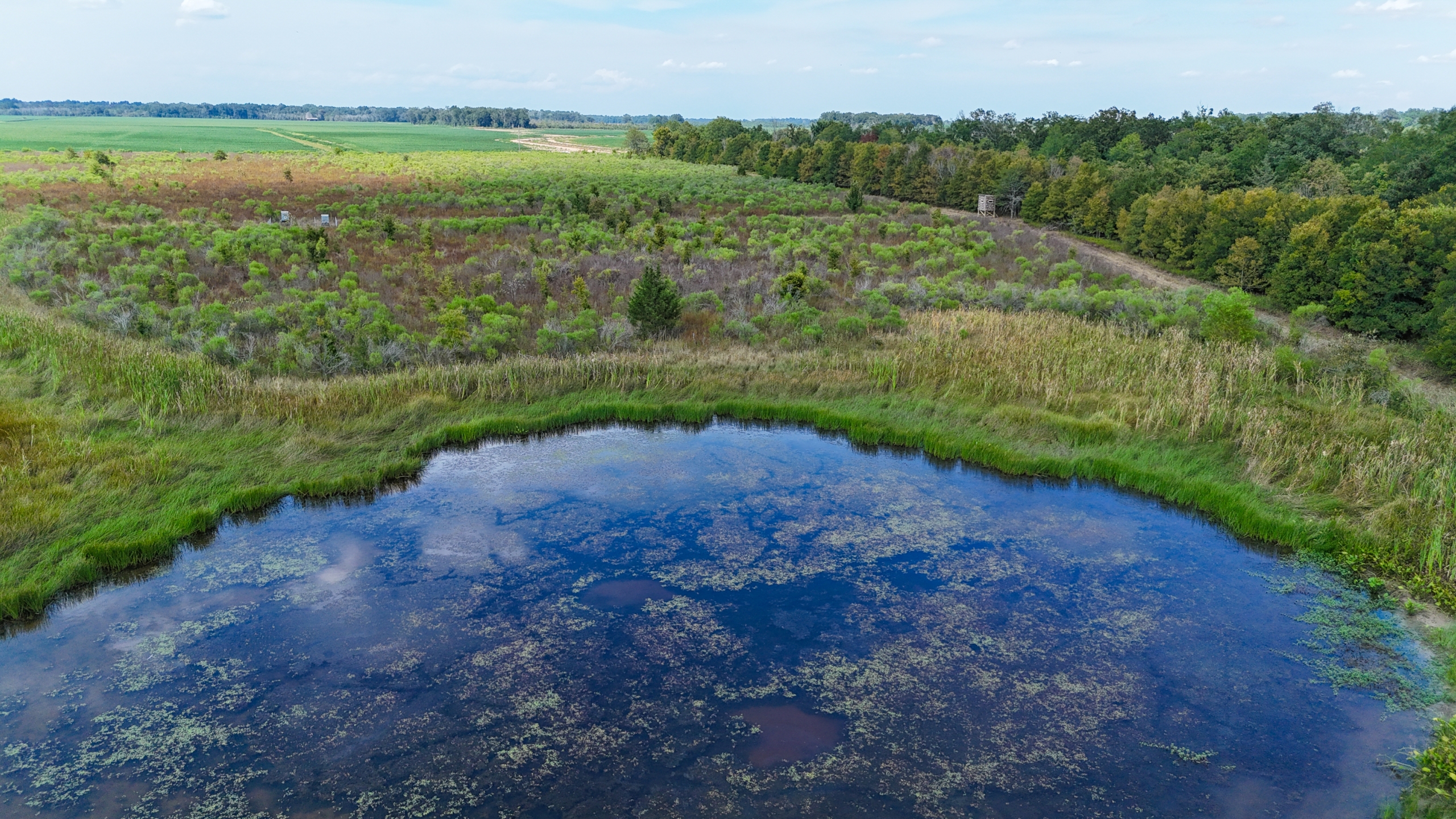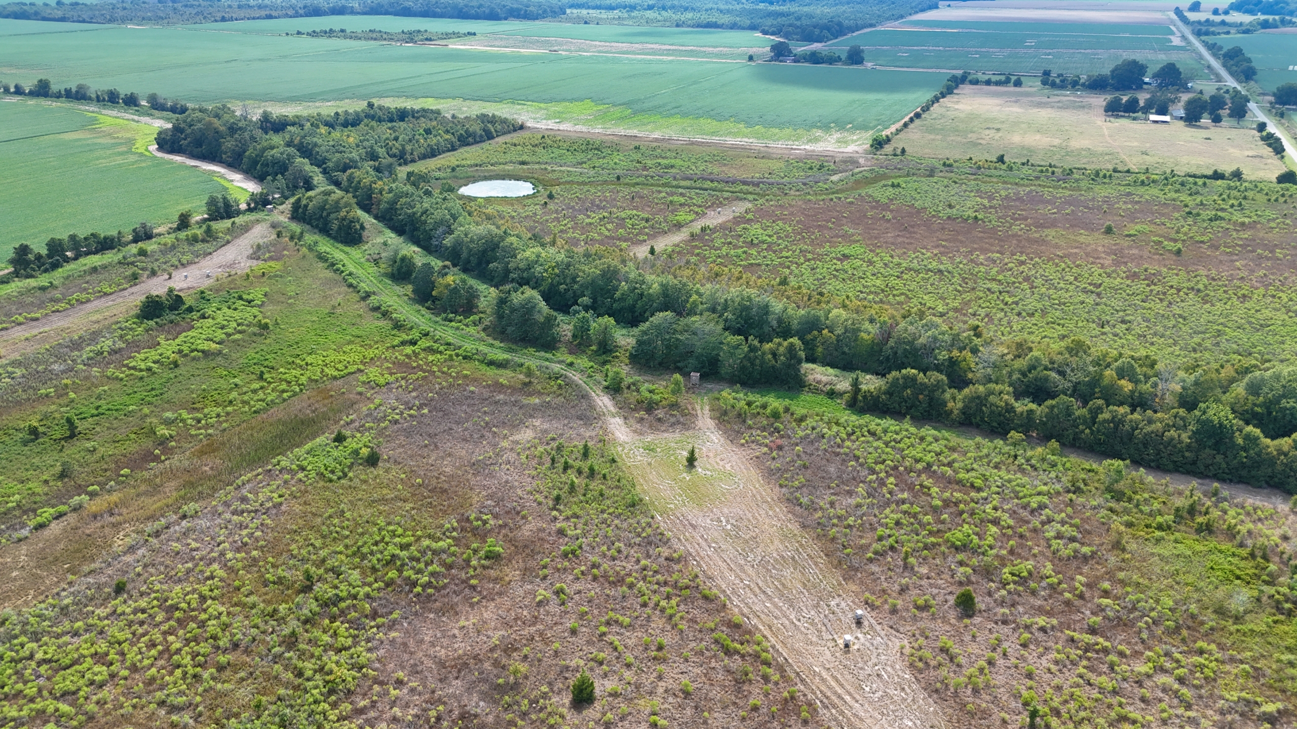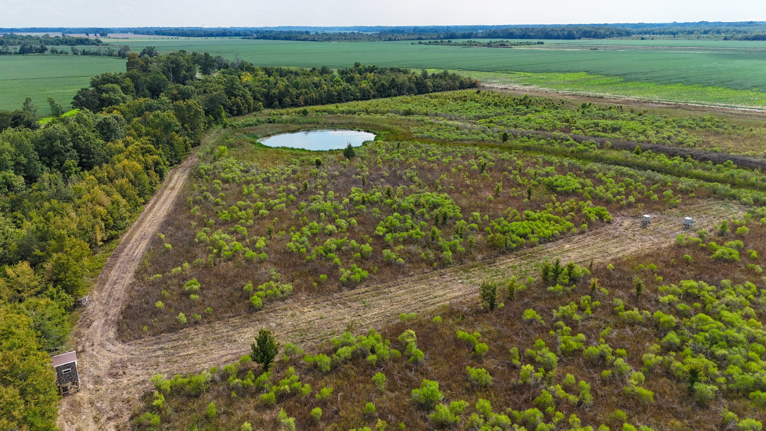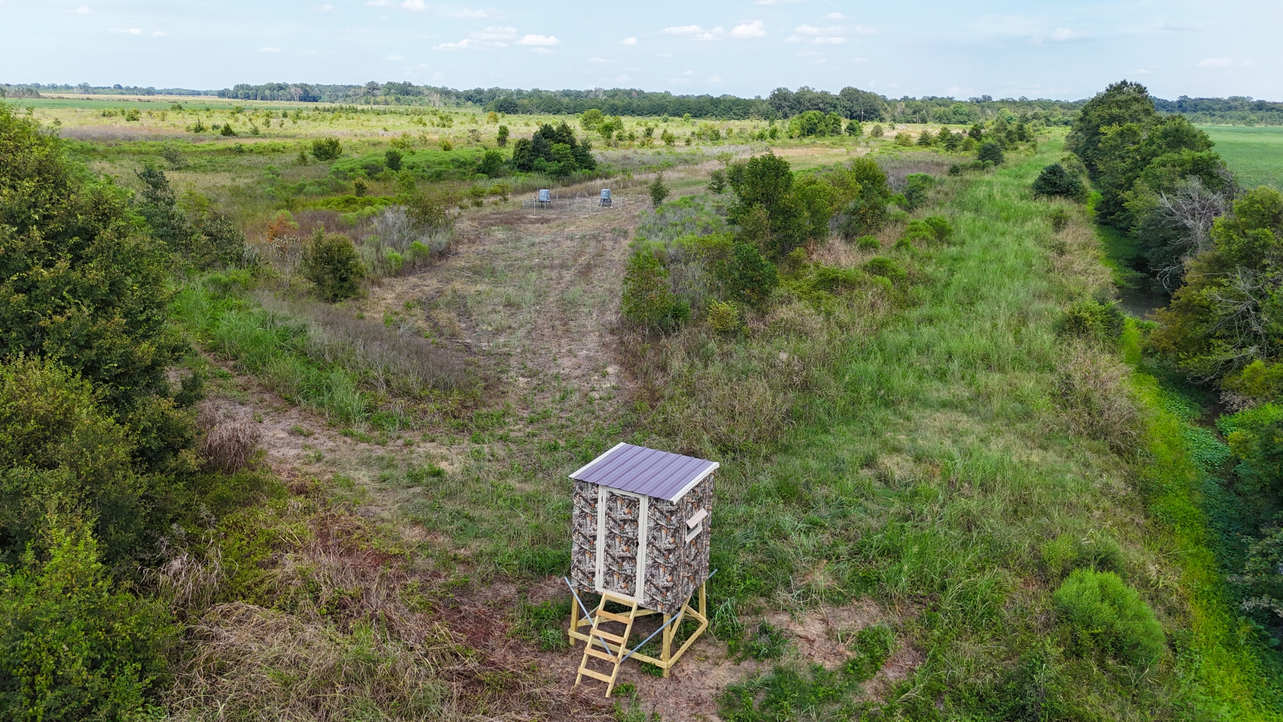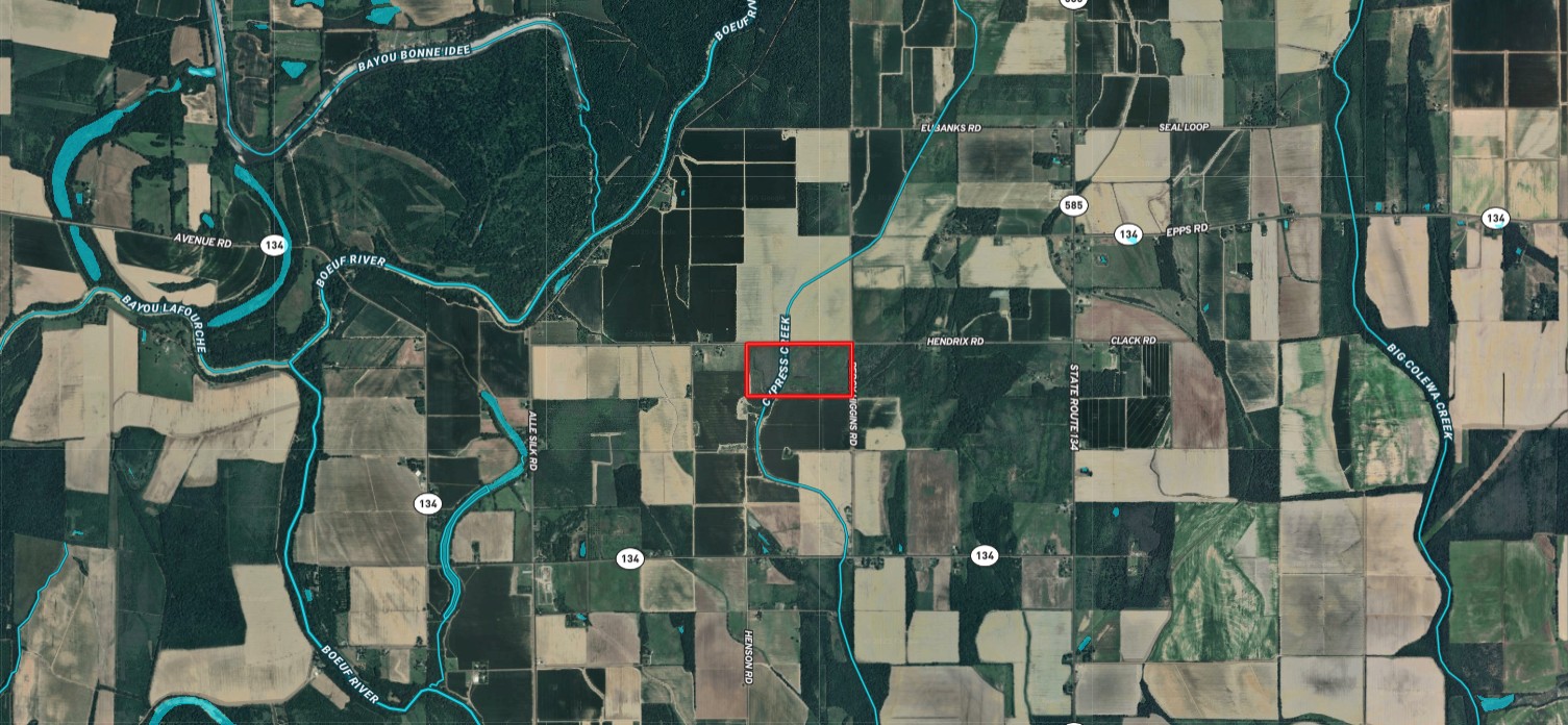 Hunting land for sale in North Richland Parish. This tract has excellent access via two public roads adjoining it. Hendrix Road, a blacktop road, is on the north side, and Percy Higgins Road adjoins it on the east side. This is a turnkey hunting tract that comes with three brand-new box stands, six feeders, and panels surrounding the feeders. There is a pond, along with some levees, where duck hunting could be a possibility. Meta is 5 miles away, Rayville is 11 miles away, Oak Ridge is 7 miles away, and Epps is 10 miles away. The feeders have been putting out corn and protein pellets this summer. There are also soybean fields on both sides of this property, so the deer are well-fed. The property is in WRP. Contact us for more information about the program if you’re not familiar. Cypress Creek goes through the middle of this property. Bedding area, food, and water are all right here, providing a perfect habitat for deer. The coordinates to the property are 32.60952, -91.64933. Call today for more information.