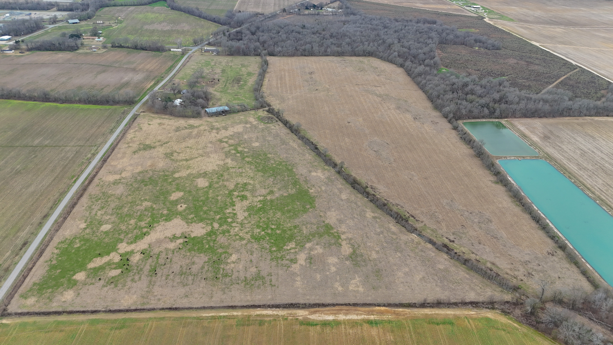 Pastureland with a home, shop, and two sheds. This property is fenced in and currently has cattle on it. This sits north of Union Church Road. This land was once farmed and could be returned to farmland. The brick home needs some TLC, but could be repaired. The home’s total living area is 2,150 ± square feet, with three bedrooms and two baths. Rowing Bayou traverses the land from east to west. This land is not in a flood zone there are no restrictions. The META site is 13 miles due north. The address to the property is 1028 Union Church Road Winnsboro, LA.