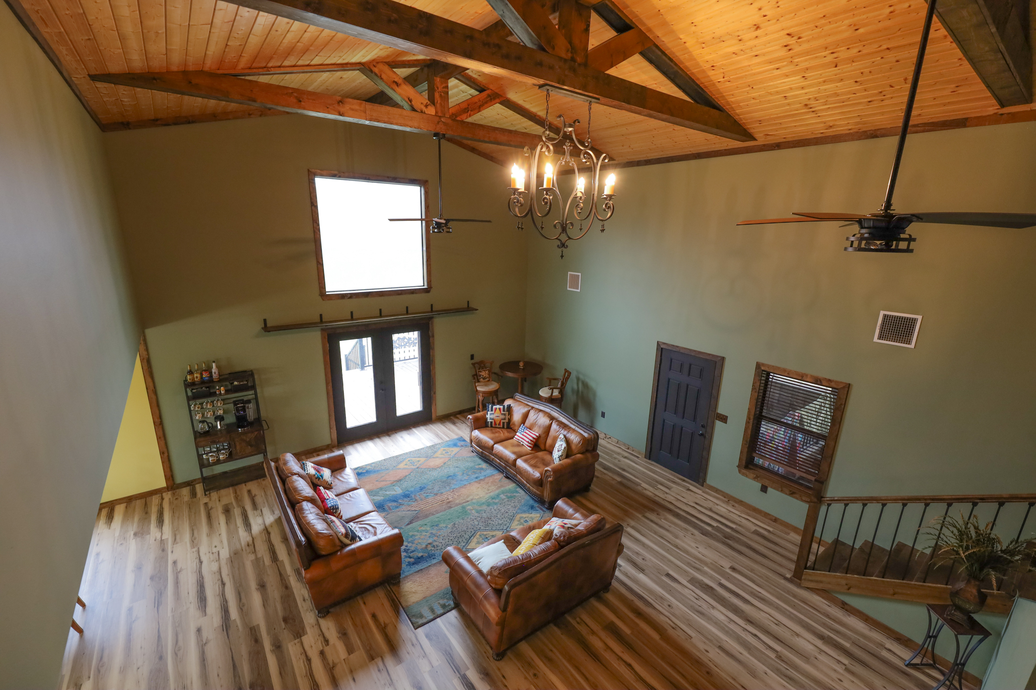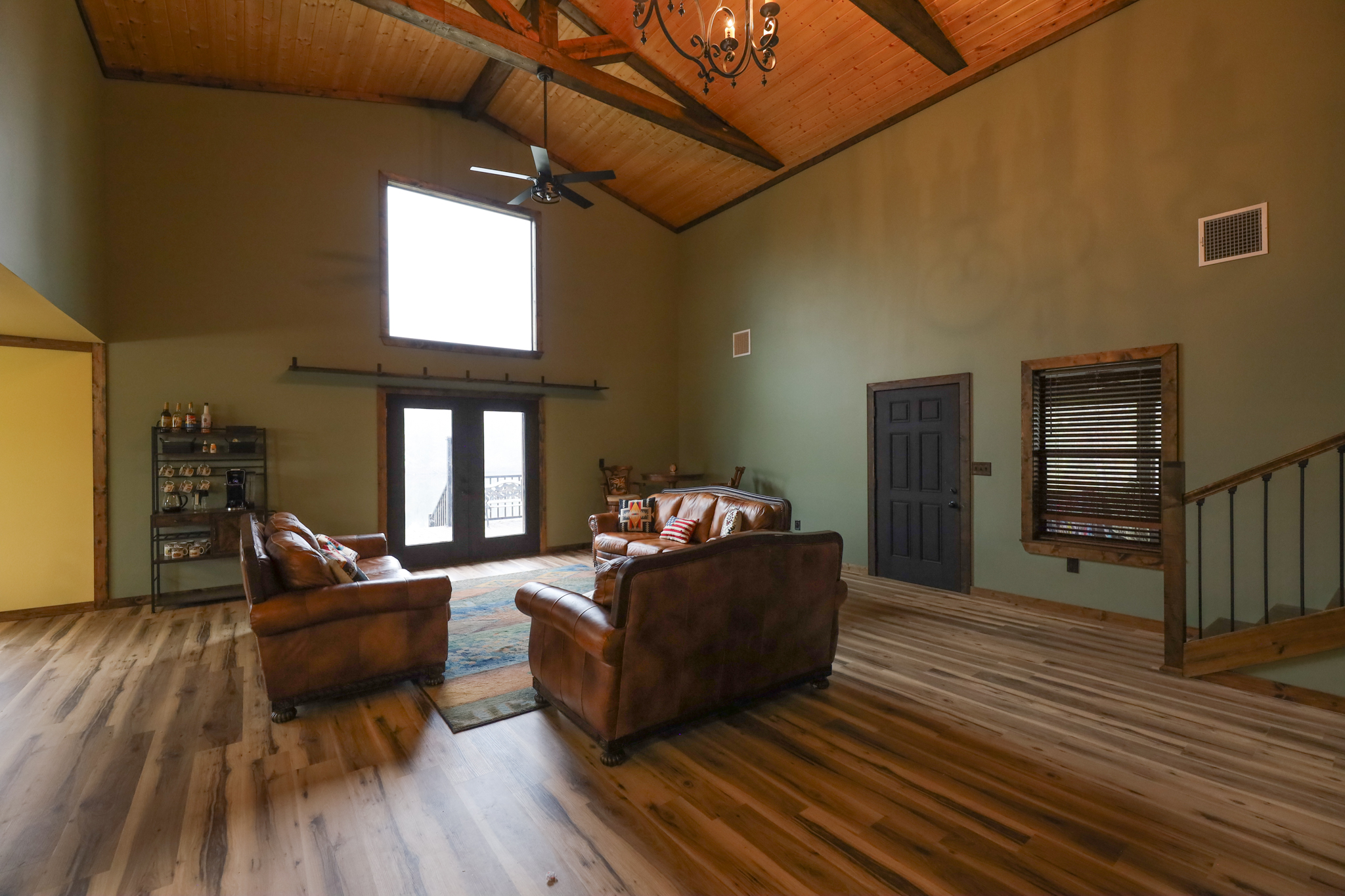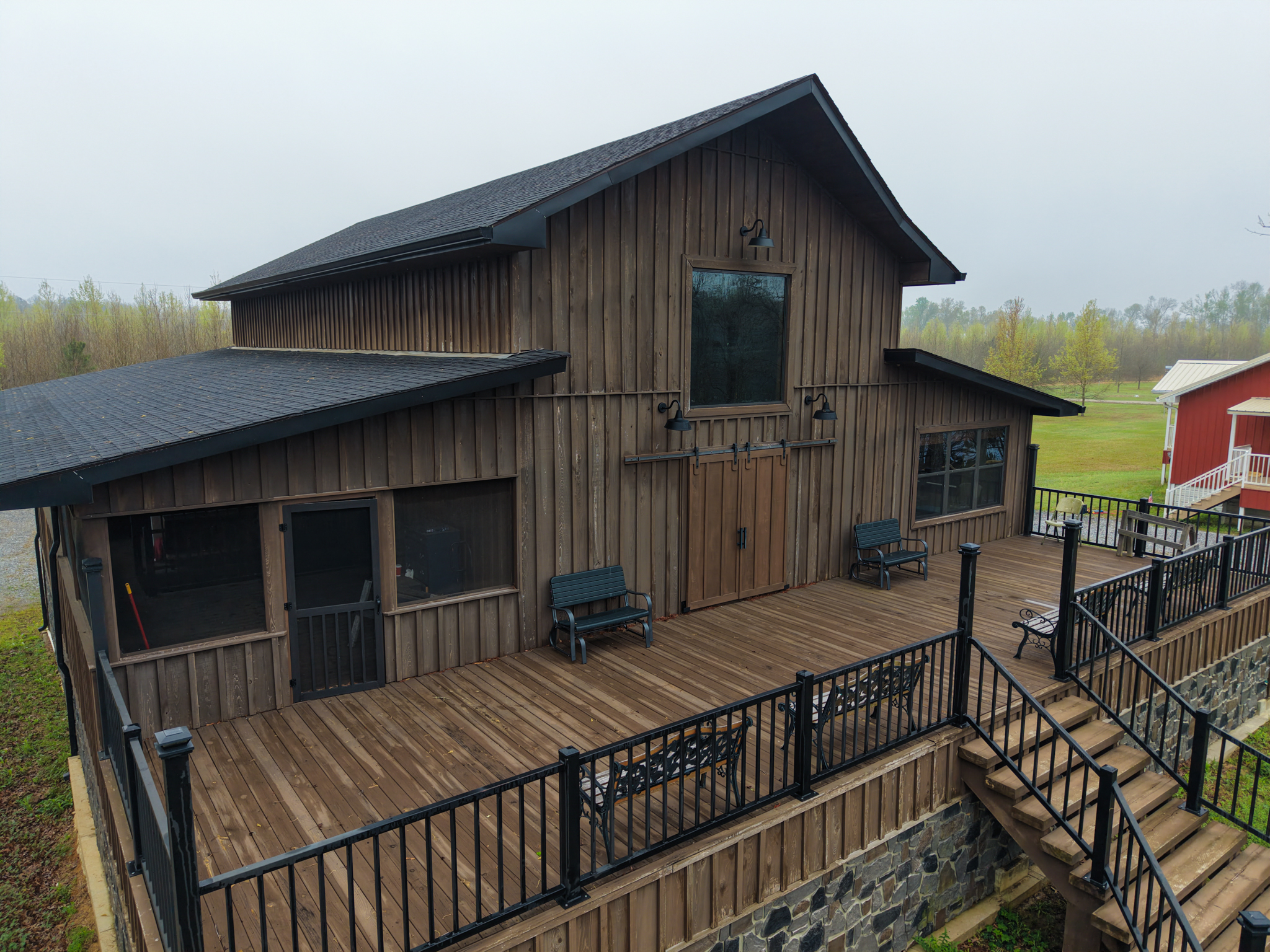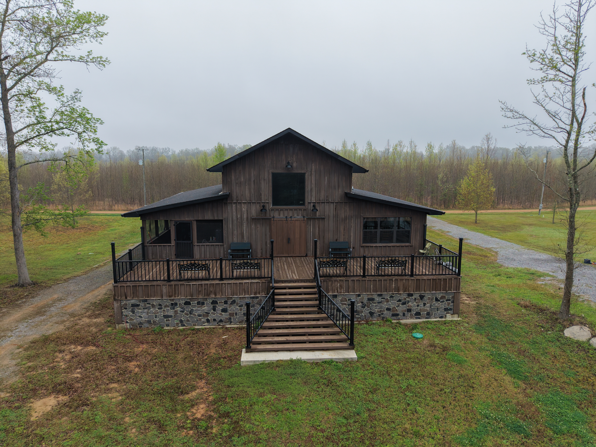 The camp was built in 2021 and has cypress siding, metal roof and a gutter system. Underneath the camp there is ample parking for four vehicles- the camp can be accessed from underneath parking area that allows for access in wet weather without getting wet.