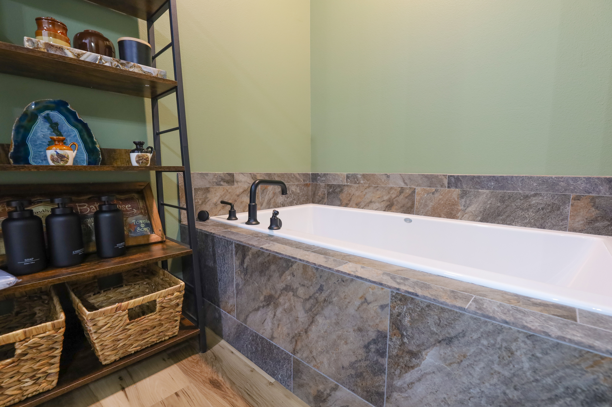 There are two bedrooms downstairs that share a full bath, tub, shower, and double sink, both bedrooms have closets for storage.