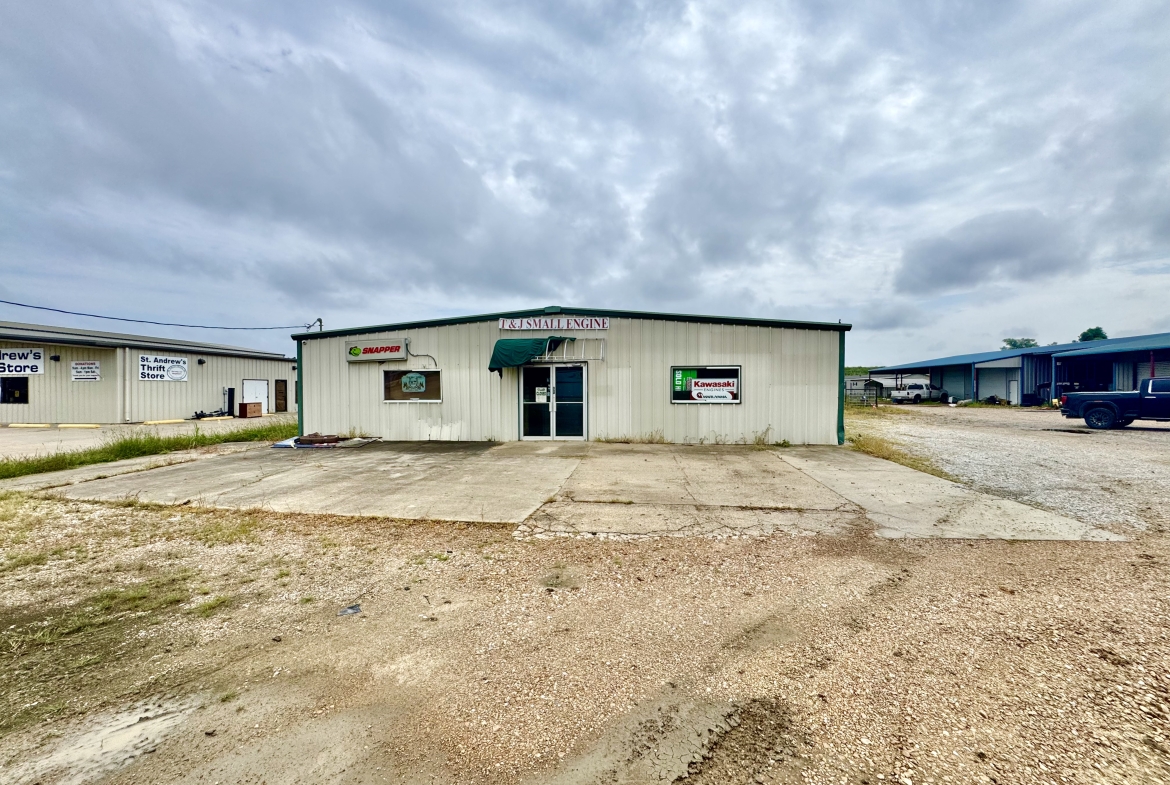 Previously used as a small engine repair shop, the building features multiple offices and functional workspace areas, making it ideal for service-based businesses, retail, or light industrial use.