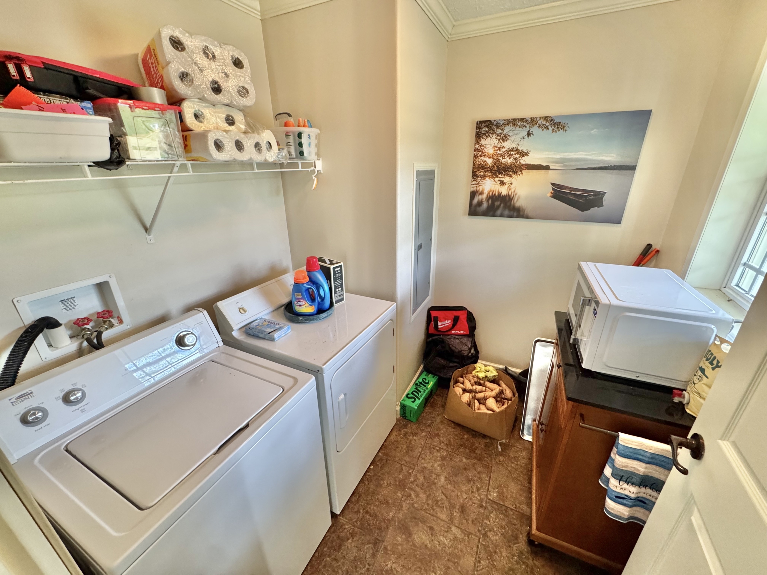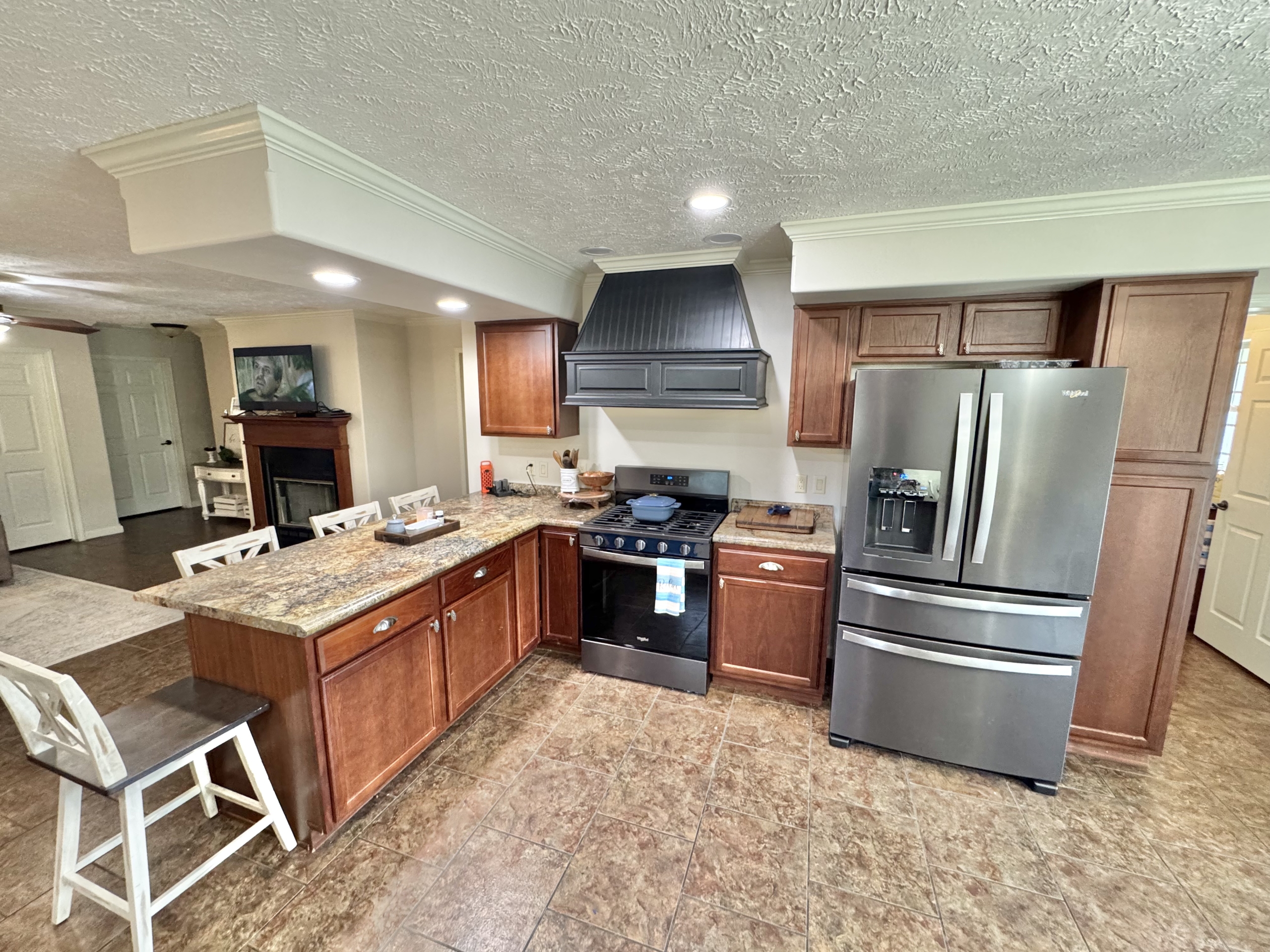 Inside, you’ll find a spacious living room and a large kitchen featuring brand-new appliances, including a refrigerator and stove. The home also includes a dedicated laundry room complete with washer and dryer.