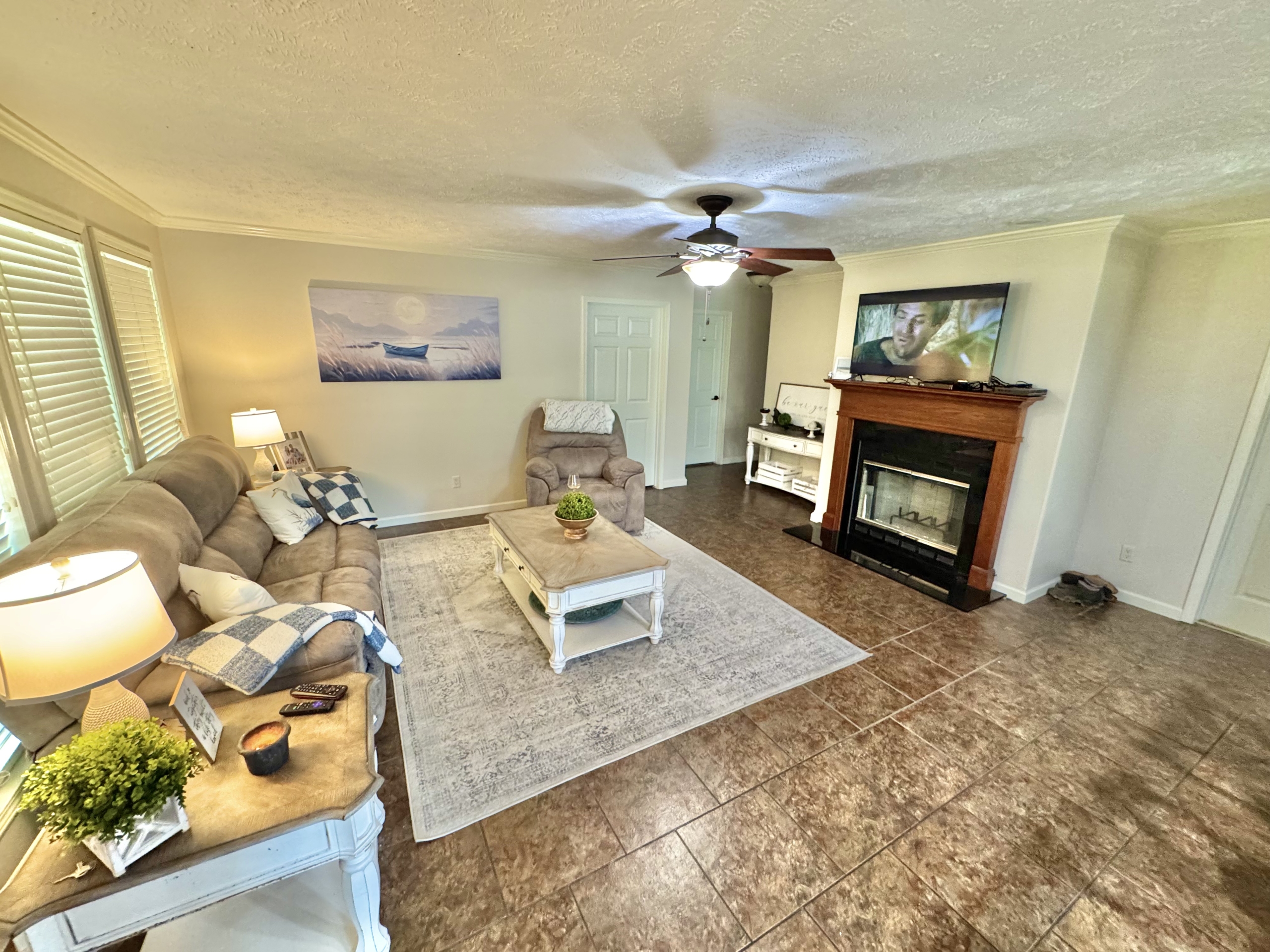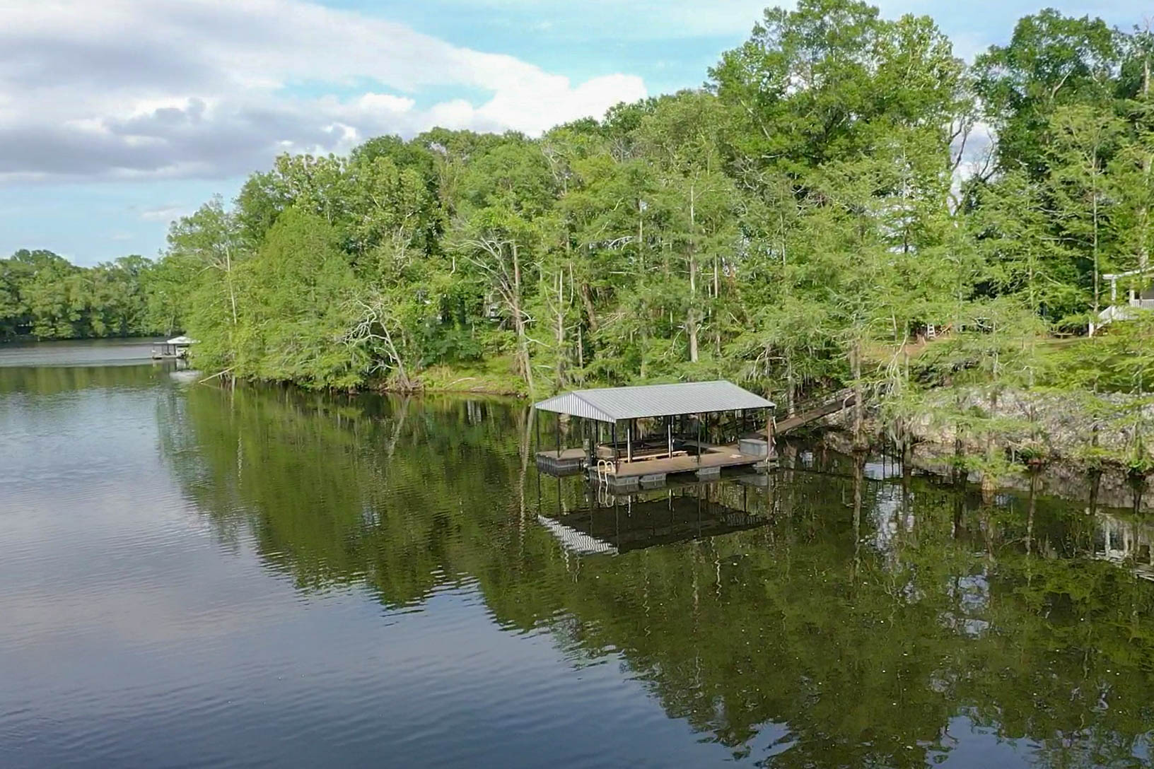 Step outside to enjoy a covered porch, plus an additional porch overlooking the water-perfect for relaxing or entertaining. The property also features a covered boathouse with an installed boat slip and lift, making it ideal for boating enthusiasts.